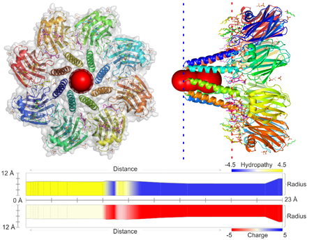 - Download results - complete results as ZIP or PDF report, channel PDB files and scripts for PyMol, Chimera, or VMD visualization, rich JSON, and channel profile image as SVG or PNG